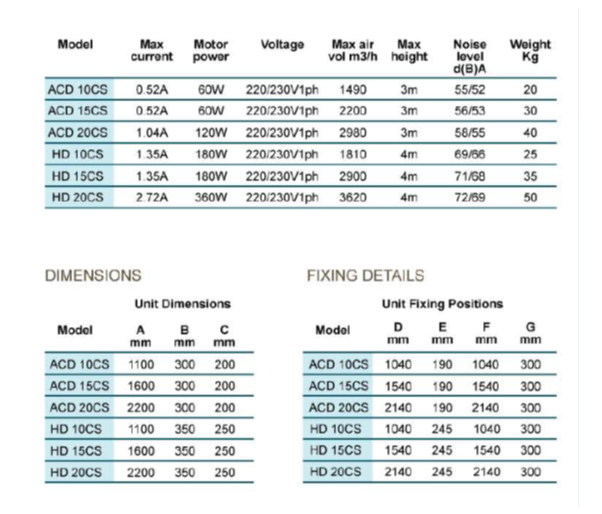 Manufactured in stainless steel cabinets in a range of sizes to suit most opening widths up to 2.5 metres high. Variable speed control to allow the optimum outlet velocity to be selected, with high efficiency motors to ensure lower running costs and quicker pay-back.